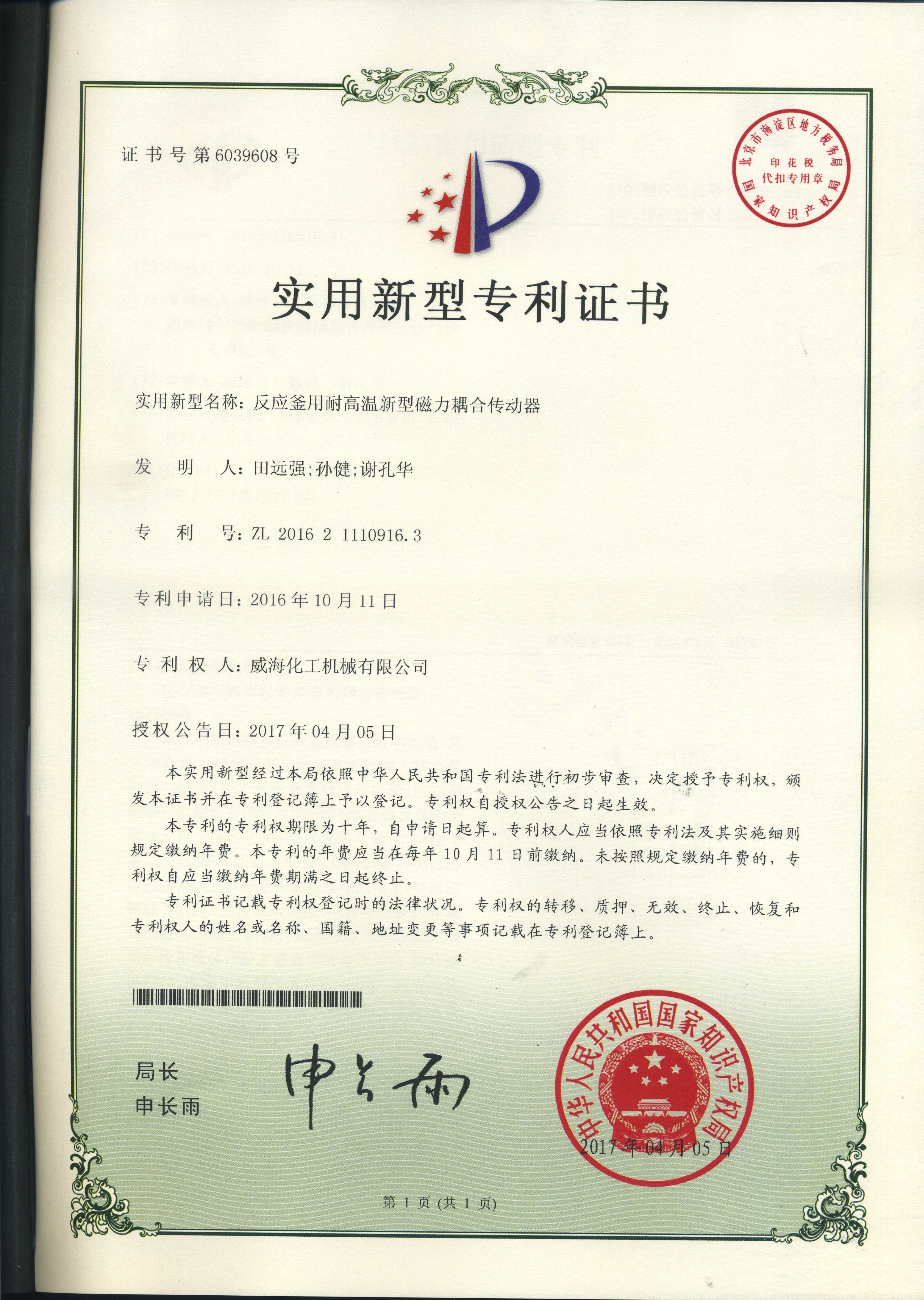 公司建有磁力驅(qū)動測試試驗(yàn)室、攪拌模擬試驗(yàn)室、反應(yīng)釜流體混合攪拌重點(diǎn)實(shí)驗(yàn)室等,科研力量雄厚。截至2024年,公司共承擔(dān)近280項(xiàng)自主/合作開發(fā)任務(wù),先后承擔(dān)省級新產(chǎn)品開發(fā)任務(wù)25項(xiàng),其中23項(xiàng)產(chǎn)品已達(dá)到國內(nèi)水平。獲得各類省、市級技術(shù)創(chuàng)新獎30余項(xiàng);參與起草、修訂標(biāo)準(zhǔn)共8項(xiàng),GB/T30098-2013實(shí)驗(yàn)室用磁力驅(qū)動反應(yīng)釜標(biāo)準(zhǔn)、HG/T3648-2011磁力驅(qū)動反應(yīng)釜標(biāo)準(zhǔn)、GB/T29254-2012實(shí)驗(yàn)室反應(yīng)釜用控制器標(biāo)準(zhǔn)、NB/T47002.1~47002.4-2019壓力容器用復(fù)合板;已獲得授權(quán)專利95項(xiàng),其中發(fā)明專利19項(xiàng),實(shí)用新型專利69項(xiàng),外觀專利7項(xiàng);擁有專有技術(shù)和核心技術(shù)40余項(xiàng)。